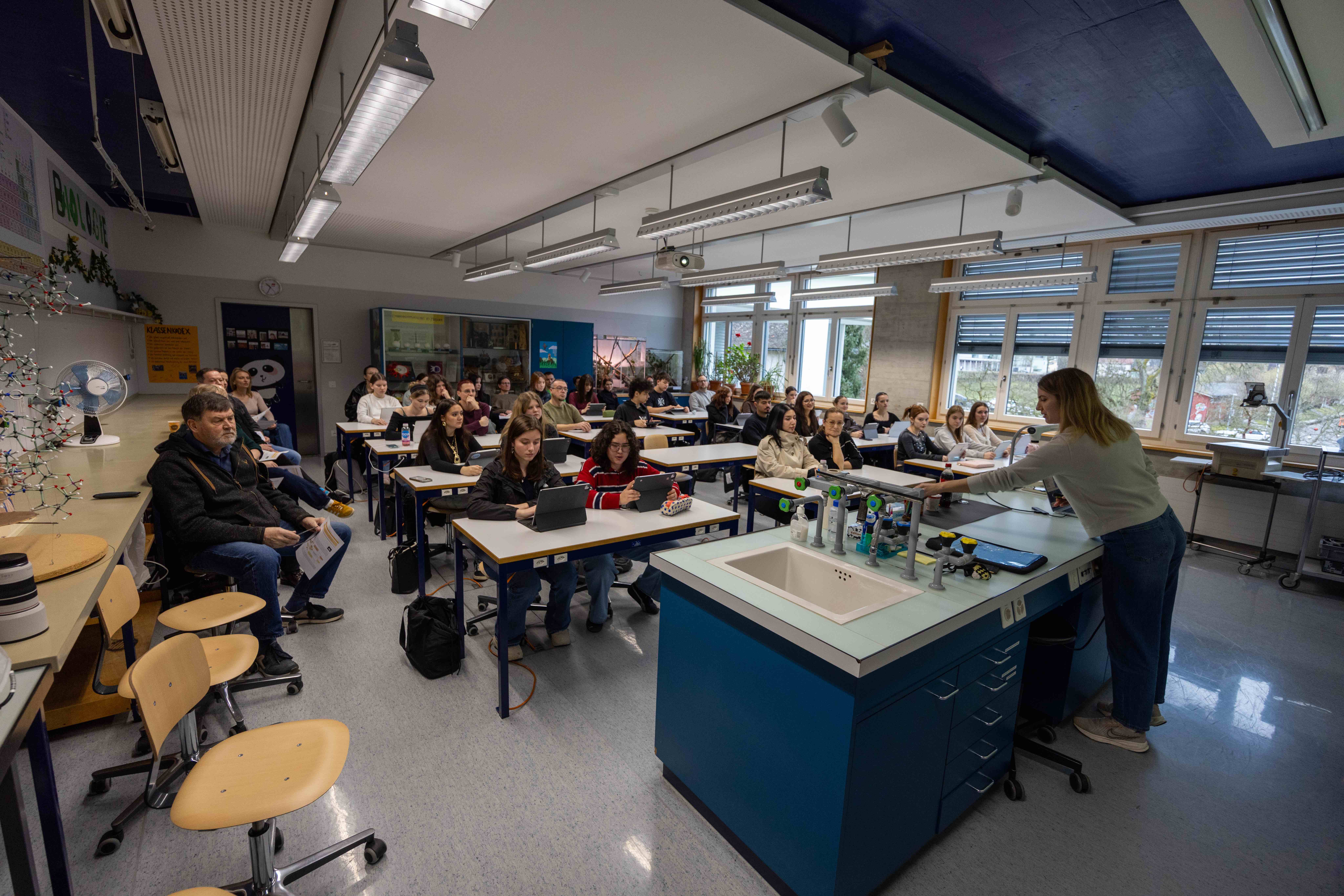 Mit der Kamera unterwegs war Lukas Diel (3i). 20 seiner Bilder finden sich unten in der Bildergalerie. Bei Amina Giger und Julia Spohr hat Lukas Diel ins Bildnerische Gestalten hineingeschaut, bei Stefan Keller und Sven Nüesch in den Informatikunterricht. Im Musikunterricht bei Sven-David Harry wurde gesungen, und zusammen mit der 1fb setzte sich Janine Sprenger mit Fragen aus der Biologie auseinander.