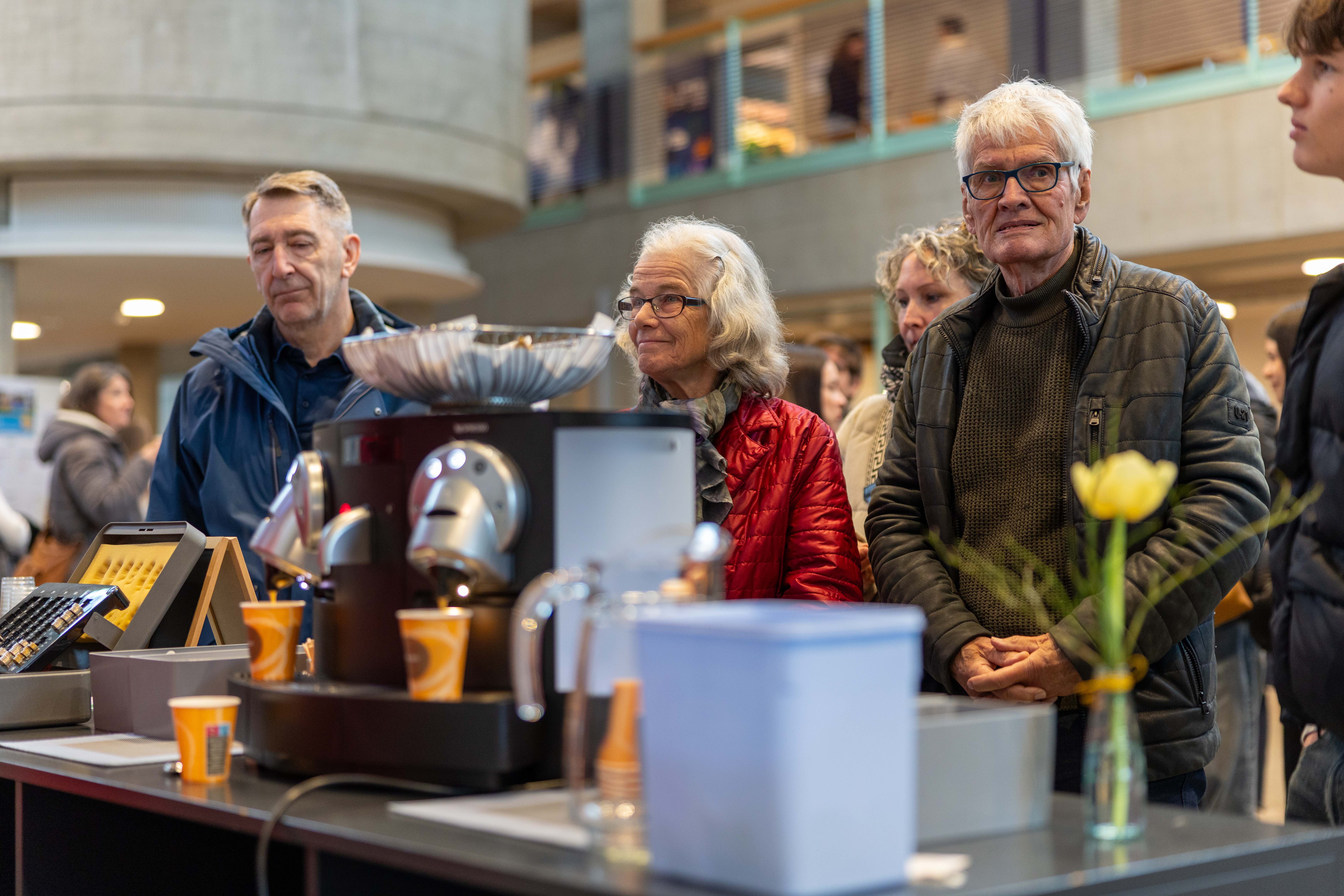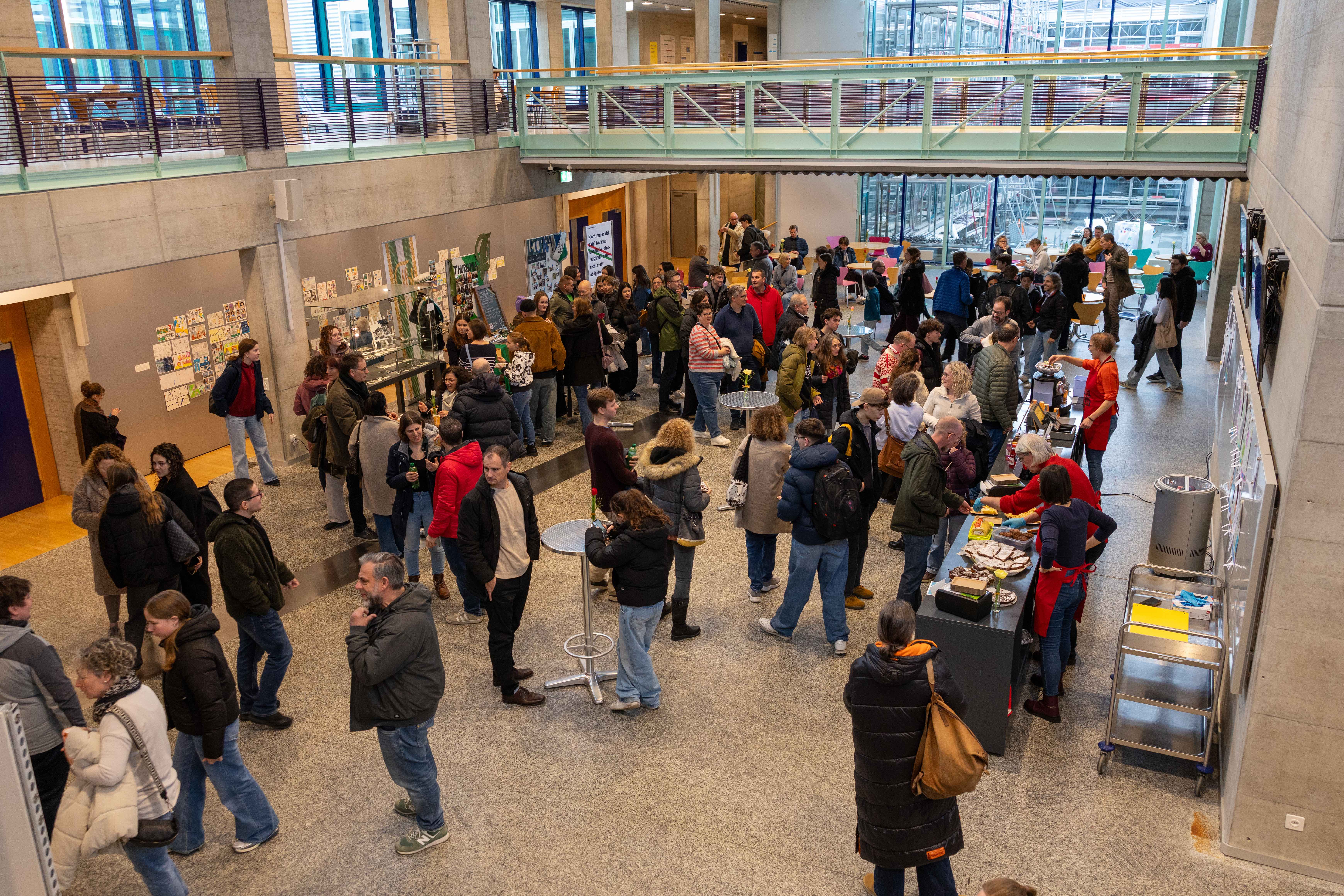 In den Pausen zwischen den drei Besuchsmorgen-Lektionen gab's Kaffee und Kuchen: Im Hauptgebäude war das «Bistro» geöffnet, und im «Café Prof» bewirteten Lehrpersonen in unübersehbar roten Schürzen die interessierten Besucherinnen und Besucher.